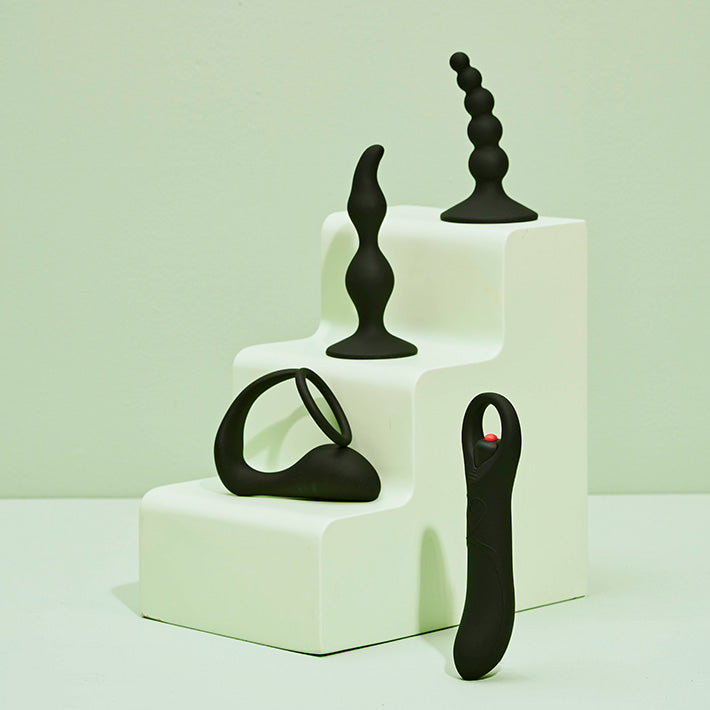 The 4 satin-soft anal toys in luxurious silicone progress from gentle bulbs and beads with hands-free suction cups to erotic cock ring & prostate combination play. Evolve your way to the most advanced toy, which vibrates to add an intensity that leads to mind-blowing orgasms.