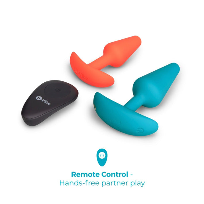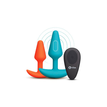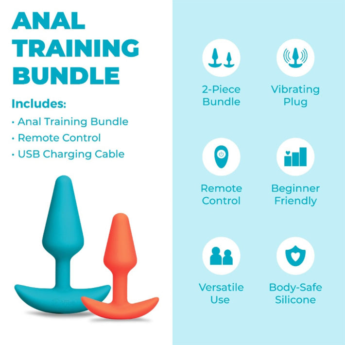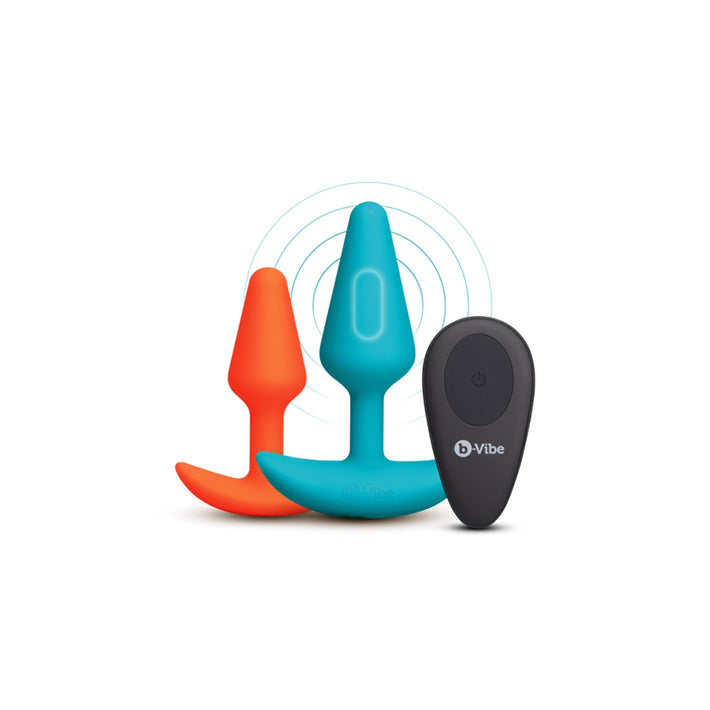 When you're ready to explore the world of posterior pleasure or are looking for a great way to introduce anal play into your relationship, you've got a buddy in the b-Vibe Butties Anal Training Kit. This versatile anal training kit is a 3-piece bundle that includes 1 small anal plug, a larger vibrating butt plug, and an easy to use remote control.