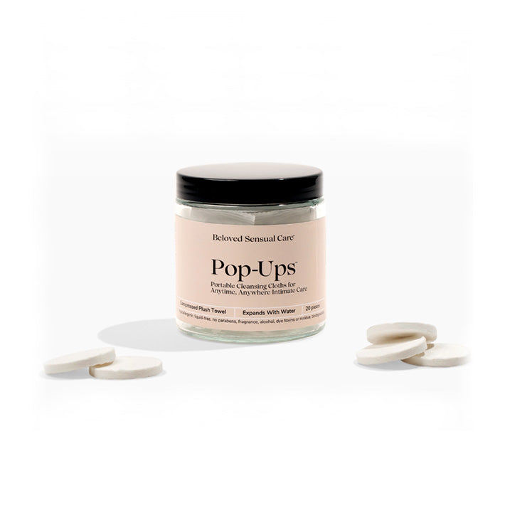 Pop-Ups Portable Cleansing Cloths are the perfect way to freshen up anytime. The plush and sizable towels are compressed and individually wrapped so they're compact and easy to take on the go, whether you just need one or the 20 included in each jar! These delightful hygiene wipes are a great addition to your sexual wellness routine, post-gym wipe down, or even camping clean up. Just add water and watch each cloth plump up but don't worry, they're hypoallergenic and contain no solutions, chemicals, dyes, or fragrance. They're even biodegradable, so you can stress less about using a disposable item. Keep them handy in your nightstand with your sex toys, in your car, or as part of your baby and body kit.