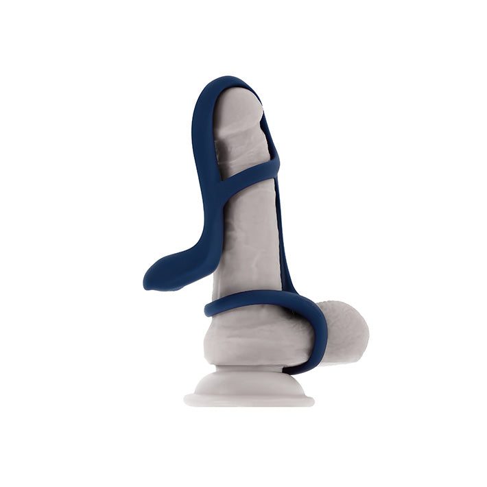 When you're ready for a good time, you want to be enveloped in the Big Time Girth Enhancer. This vibrating penis extender is designed to please both the wearer and the receiver with added girth for an incredible feeling of fullness and open sides that ensure you still have access to all the sensations penetrative play has to offer. This unique penis toy is made of smooth, body-safe silicone and flexes as it moves with your body for a truly comfortable experience every time. The dual ball and cock ring fits snug at the base of your shaft and around your balls for a stabilizing hold and erection support. A clitoral stimulator at the base of the extender has it's own motor for powerful partner pleasure, while a second motor revs the 7 vibrating speeds and patterns that echo through the shaft.