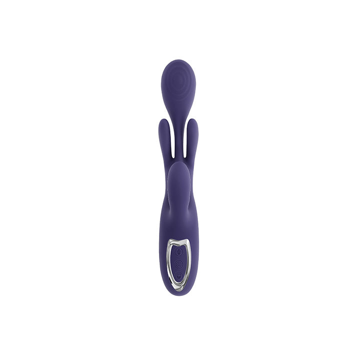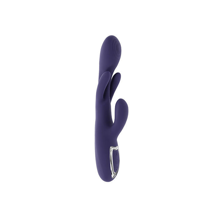 The Bow Down Come Hither rabbit vibrator is the kind of unique most sex toys only dream of being. This multi-function, dual stimulation vibrator not only pleasures you with 10 powerful vibrating speeds and patterns, it brings a whole new element of physical touch and movement to every session. The popular 'come hither' style takes on new meaning with the Bow Down's two 'arms' that flank the main shaft. Creating a truly unique internal sensation with every bow, the arms lower and raise at 10 different speeds and patterns.