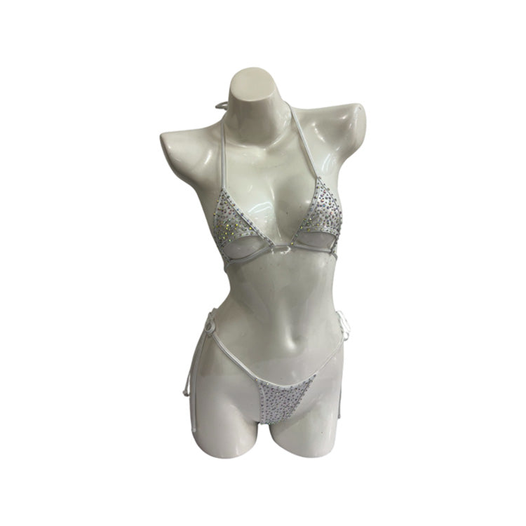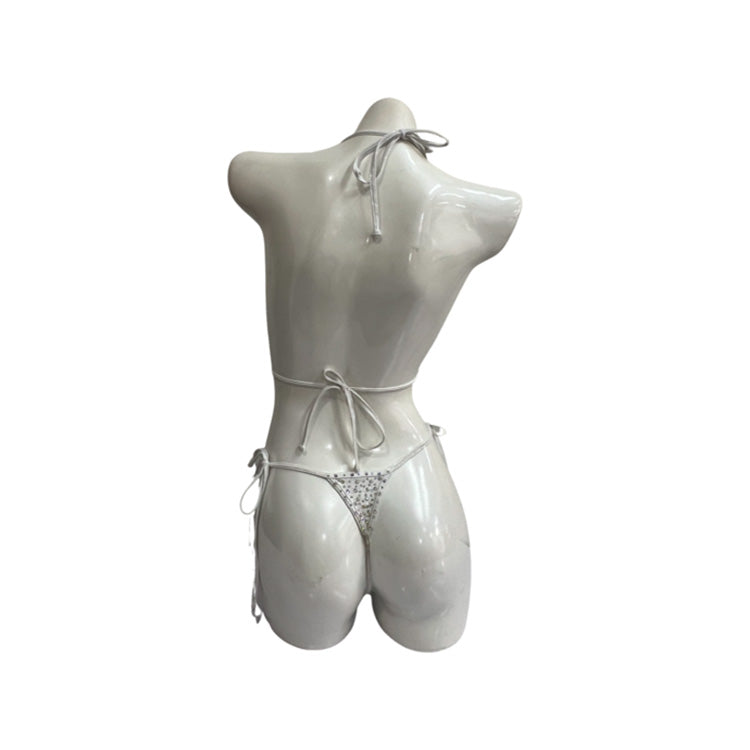 Who doesn't love a little underboob? Give them a sneak peek with the Crystal Peek-A-Boo bra and panty set. This fabulous champagne colored set is made of luxe 4-way stretch twinkle fabric and hand beaded with high quality rhinestones. Shimmer where it counts most in the cut out triangle top and Brazilian thong bottom with side ties.
