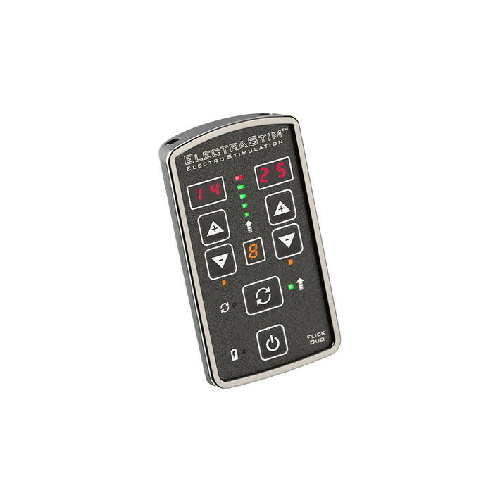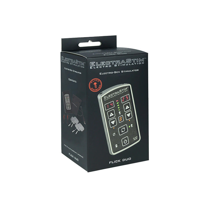 The Flick Duo, an upgrade in capacity from the orignal Flick Pack, is ideal for Erotic Electrical Stimulation beginners who want to explore e-stim, as well as those who want to use a greater number of accessories at once. Thanks to it's easy-to-use format and slim, compact design, it's easier to handle than other e-stim pack models.