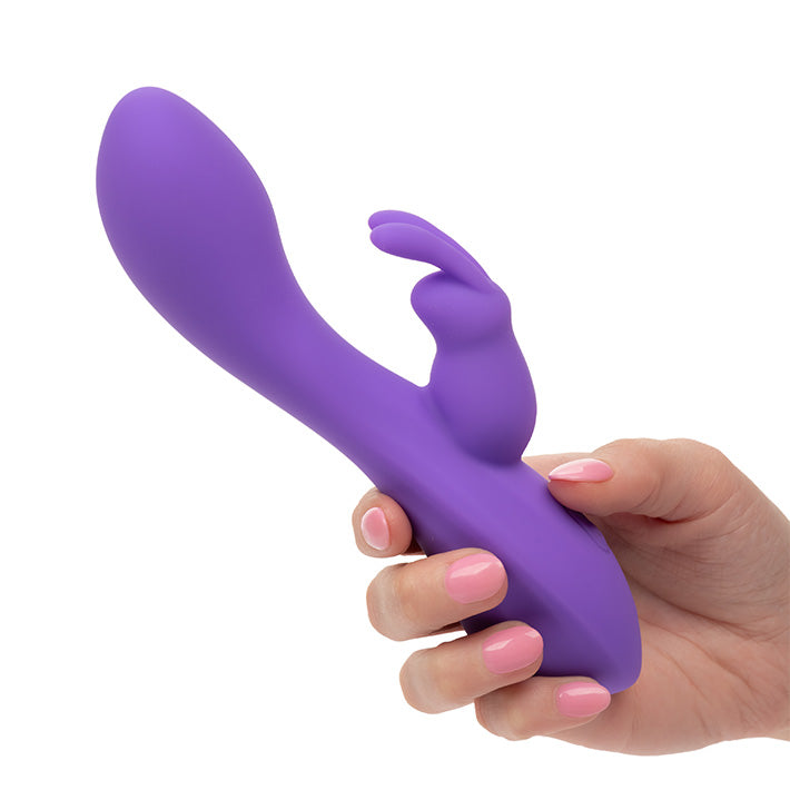 No need for gymnastics to hit the right spot when your sex toy will do the bending for you! The Flex Bend & Hold Double Rumbler has an ultra flexible shaft that bends and then holds the positions you place it in, so you can achieve the specific stimulation you need to have the powerful orgasm you want. This rabbit vibrator is made of super smooth silicone and has a bulbous head for filling and consistent G-Spot stimulation. The external bunny ear stimulator gives you additional clitoral stimulation that no doubt will have you bending like a pretzel from the power of your blended orgasm! Independently controlled motors in the shaft and bunny ears allow you to customize your experience with 10 vibration speeds in each motor as well.