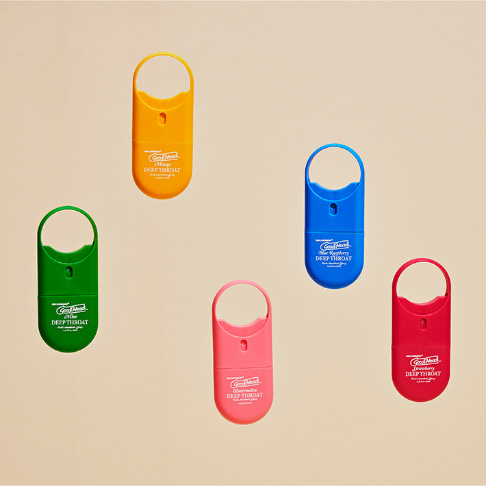 Go as deep as possible, anytime and anywhere with this helpful desensitizing spray. GoodHead Deep Throat Spray comes in a convenient to-go size that's discreet and easy to carry with you. The spray temporarily suppresses the gag reflex with 5% benzocaine, gently numbing your mouth and throat almost instantly. This water-based and great tasting formula is gentle yet powerful so you can stay in the moment and enjoy deepthroating. With no medicinal aftertaste, this delicious spray also freshens your breath!