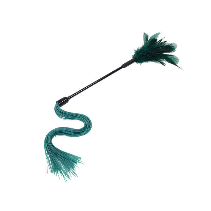 A bit of sting, a bit of tickle, this perfect sensation play sex toy is inviting and teasing all at once. Ideal for those new to kink and impact play, the Indica Feather Tickler is a compact, dual sided piece with soft green feathers on one side and a tail of silicone strands on the other. Arouse, tease, amuse, and surprise with this tickler!