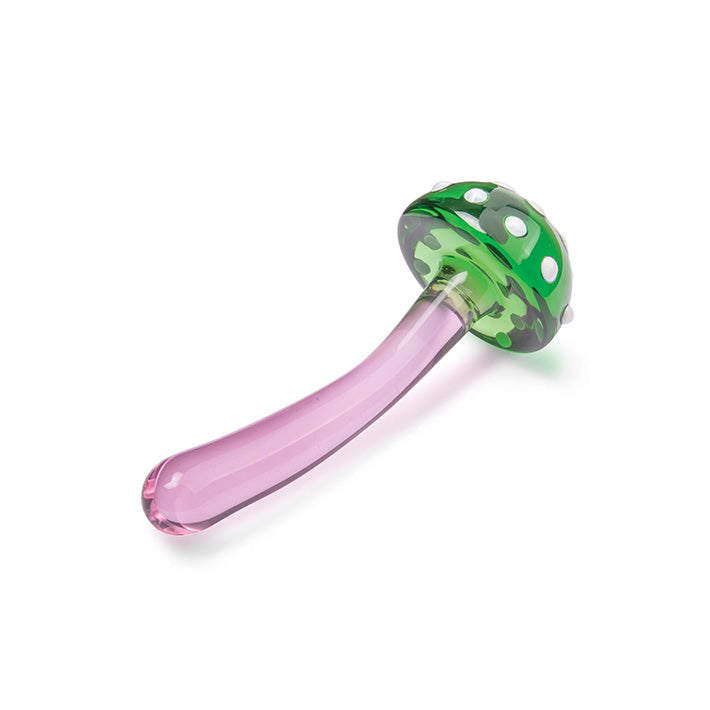For the forest gals, the cottage-core fantasies, the sci-fi nature lovers, comes the Magic Mushroom Glass Dildo. This whimsical sex toy features 7.5 inches of insertable stem and a textured bright green mushroom head made of durable, fracture resistant Borosilicate glass. This slim fantasy dildo is ideal for beginners and the raised spots on the tip could even be useful for broad, external stimulation. This handblown artisan dildo is also great for temperature play - warm it up in a bowl of hot water or cool it down in the fridge for sensation play like no other.