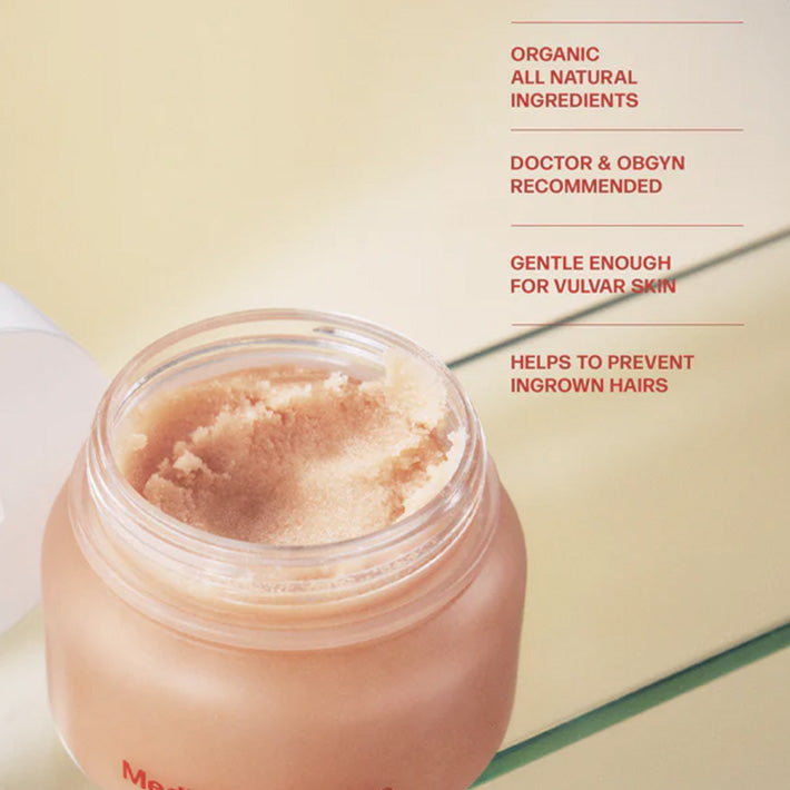 VMAGIC Grooming Polish is the effective exfoliating scrub that's gentle enough to use on your vulva and other sensitive areas. It's organic, made with all natural ingredients, and pH balanced, making it easy for your OBGYN to approve of it's use! Made from fine milled sugar, it's ideal for use before shaving and prevents ingrown hairs. Make the most of your self care time with this magical scrub.