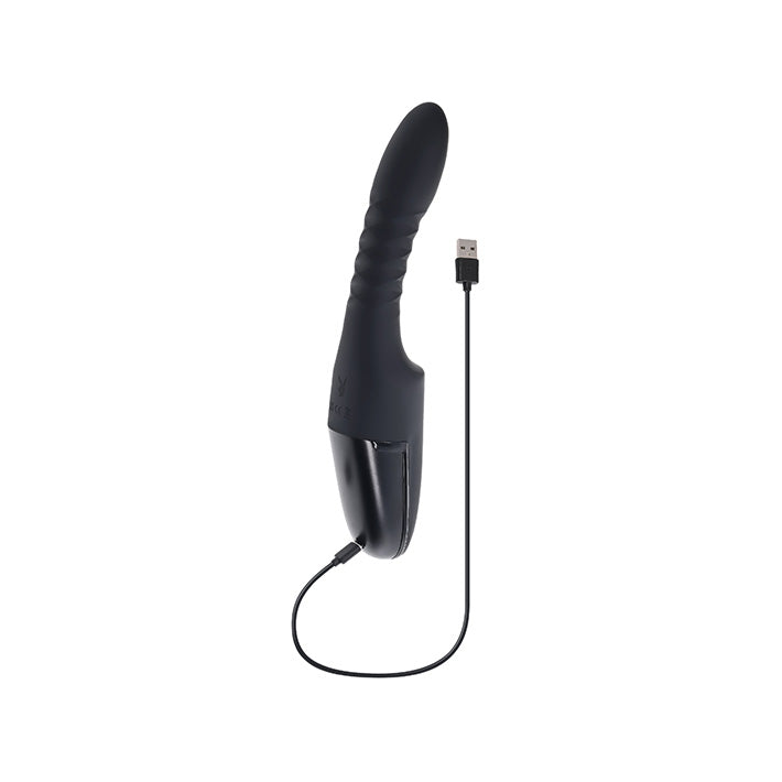 The Playboy Pleasure Overdrive Vibrator looks like a serious piece of equipment and that's because it is. A vibrator that means business, the Overdrive vibrates and thrusts to ensure you get optimal stimulation where you need it most and take you to orgasm with peak efficiency. Not that it will mind if you take your time with it, this G-Spot vibrator is designed with your needs in mind - made of smooth, body-safe silicone with a perfectly curved and textured shaft that reaches all the deepest parts of you with ease. The head of this primo sex toy also heats up to an enjoyable warmth that creates added sensation and adds realism to each session. Explore the 7 thrusting speeds and 7 vibration speeds to find the combo that's tuned perfectly to your body.