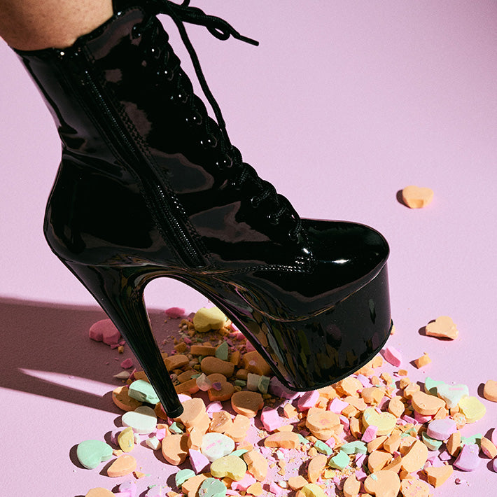 The Adore-1020 take the combat boot and make it glam, make it sexy, make it daring and worth staring at. This lace up style boot is made to stay on your foot through every turn and keep you comfortable through every routine, shift, and event. Go all night with these well-constructed gems that keep you balance and stable no matter where the night takes you. A full zipper on the inside of your ankle allows for quick on-and-off changes and the 7-inch platform/2.75-inch platform make these boots a showstopper with every outfit.