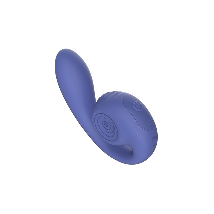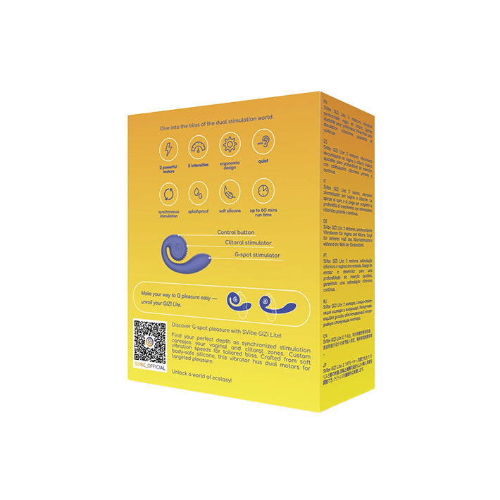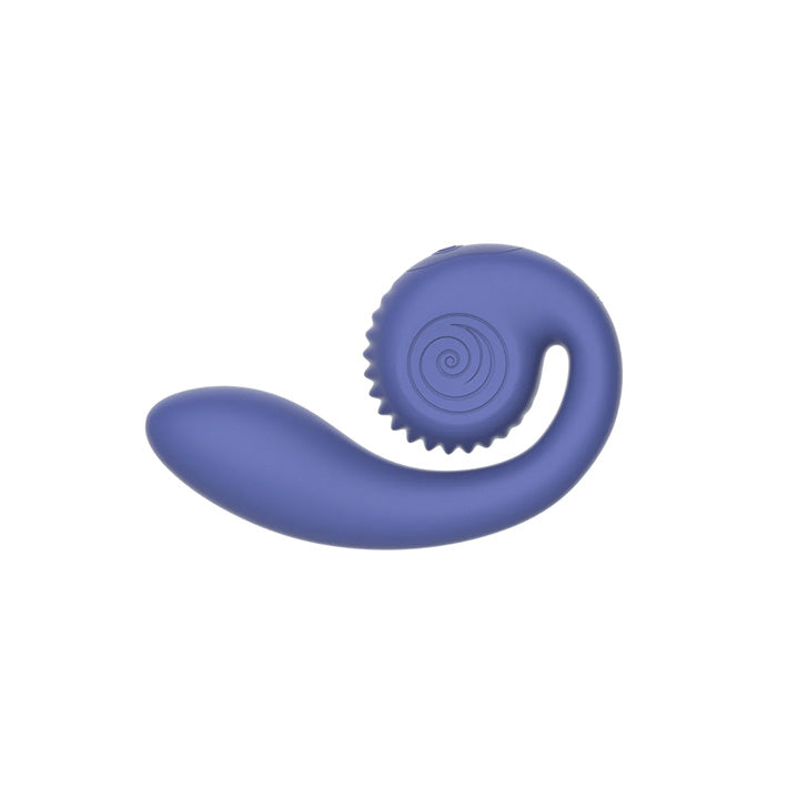 With its Slide'n'Roll design, the Gizi Lite allows for deeper penetration and A-Spot stimulation while maintaining the G-Spot massage and continuous clitoral contact you've come to expect and desire from Snail Vibe sex toys. You'll love the feel of the flexible, curved medical grade silicone shaft and unique head with textured ridges that unfurls while remaining in constant contact with your clitoris. You'll love the 600 combinations you can create with the dual controlled motors that offer 5 intensity levels and 5 vibration modes. Enjoy this G-Spot vibrator close to water, but not under, since this version is splashproof only.