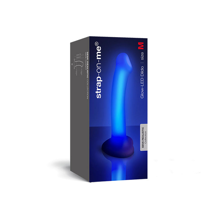 Strap-On-Me is known for their dildos that feel amazing and help you have incredible solo and partnered experiences but you've never met a dildo quite like the Glow Dildo. Made of beautiful blue liquid silicone, this semi-realistic sex toy lights up from within with the touch of a button. Make every session luminous as you explore 6 LED light settings, from a slow glow to exciting bursts of light to match your explosion orgasms. Flexible with just the right amount of squish, you'll love the way your senses come to life with this realistic dildo. The sturdy suction cup base makes it easy to enjoy illuminated hands-free play or to strap in to your favorite harness for even more ways to play. The Glow Dildo is also waterproof, so you can enjoy playing in the dark or under the water as this unique sex toy lights up your night and your body.